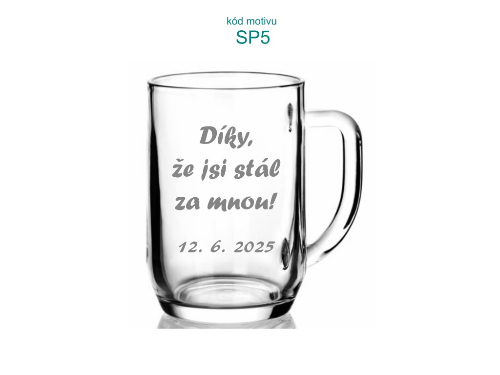 Pískovaná pivní sklenice (500ml) s vlastním motivem je originální památkou, poděkováním či doplňkem na svatební den.